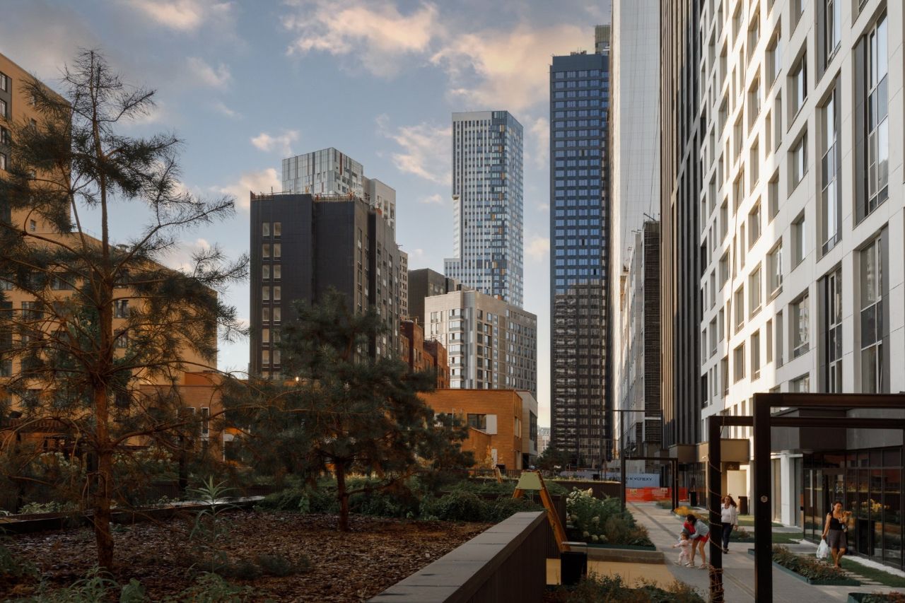 Высота корпусов разная: от 5 до 51 этажа. Каждый из корпусов имеет уникальный внешний вид.